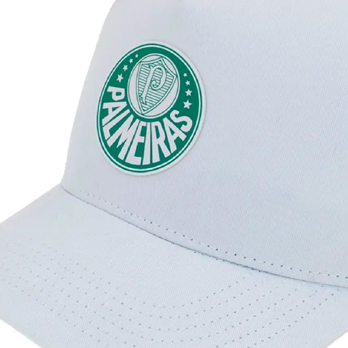 O boné Palmeiras branco traz um design estruturado que garante firmeza e estilo em qualquer ocasião.