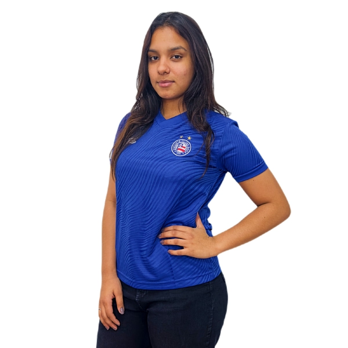 A camisa do Bahia Esquadrão Oficial é a pedida certa para as torcedoras vestirem sua paixão pelo Tricolor baiano.