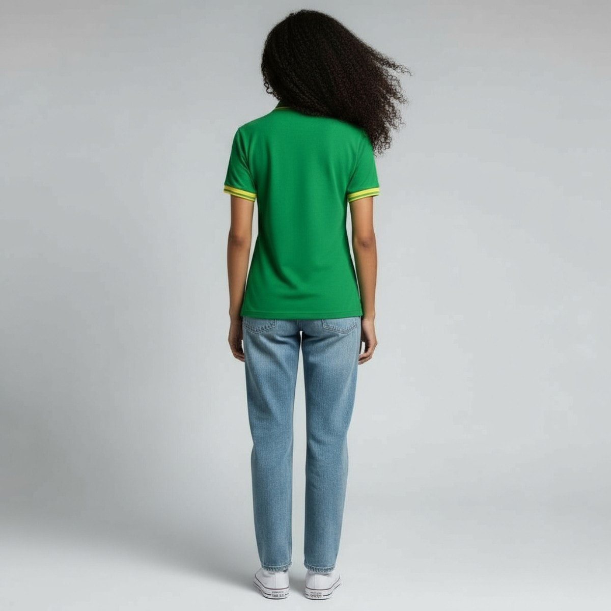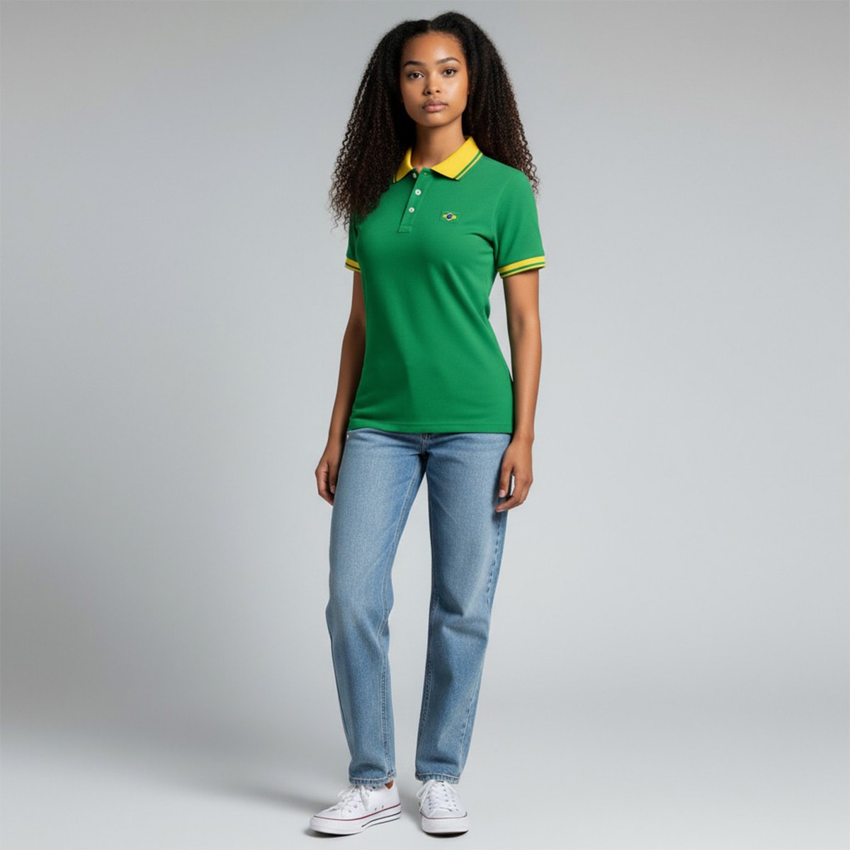Torcer pelo Brasil nunca foi tão elegante! A camisa polo Brasil combina tradição e versatilidade com seu design em verde vibrante e detalhes em amarelo, exaltando as cores da nossa seleção com orgulho.Confeccionada em tecido leve e resistente de poliéster com algodão, oferece conforto e durabilidade para o dia a dia. O fechamento em botão, as mangas curtas e o ajuste regular garantem um caimento moderno e despojado, ideal para acompanhar você nos jogos, nas comemorações ou em qualquer ocasião.