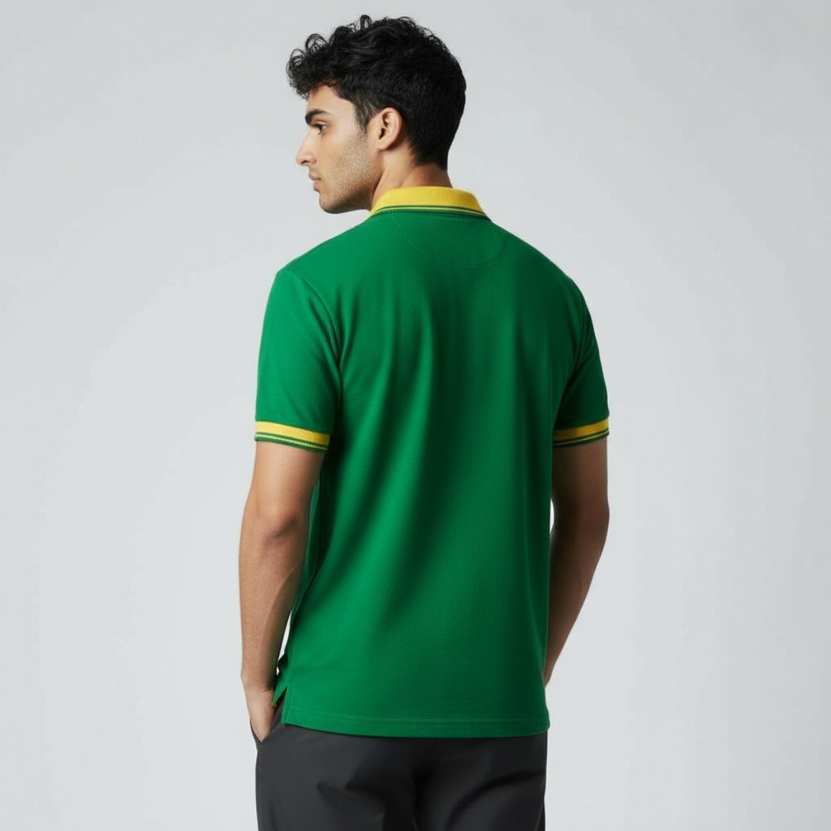 Torcer pelo Brasil nunca foi tão elegante! A camisa polo Brasil combina tradição e versatilidade com seu design em verde vibrante e detalhes em amarelo, exaltando as cores da nossa seleção com orgulho.