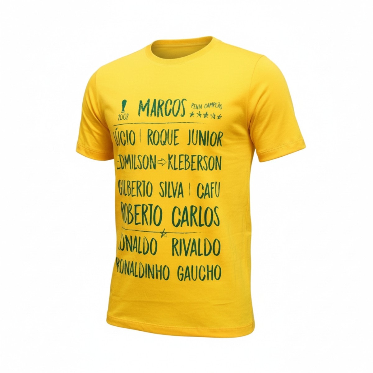 Vista o manto e torça para o hexa com a camisa do Brasil. Produzida em 100% algodão, leve e macia, na cor amarela, com a escalção do time do Penta estampada na parte frontal.