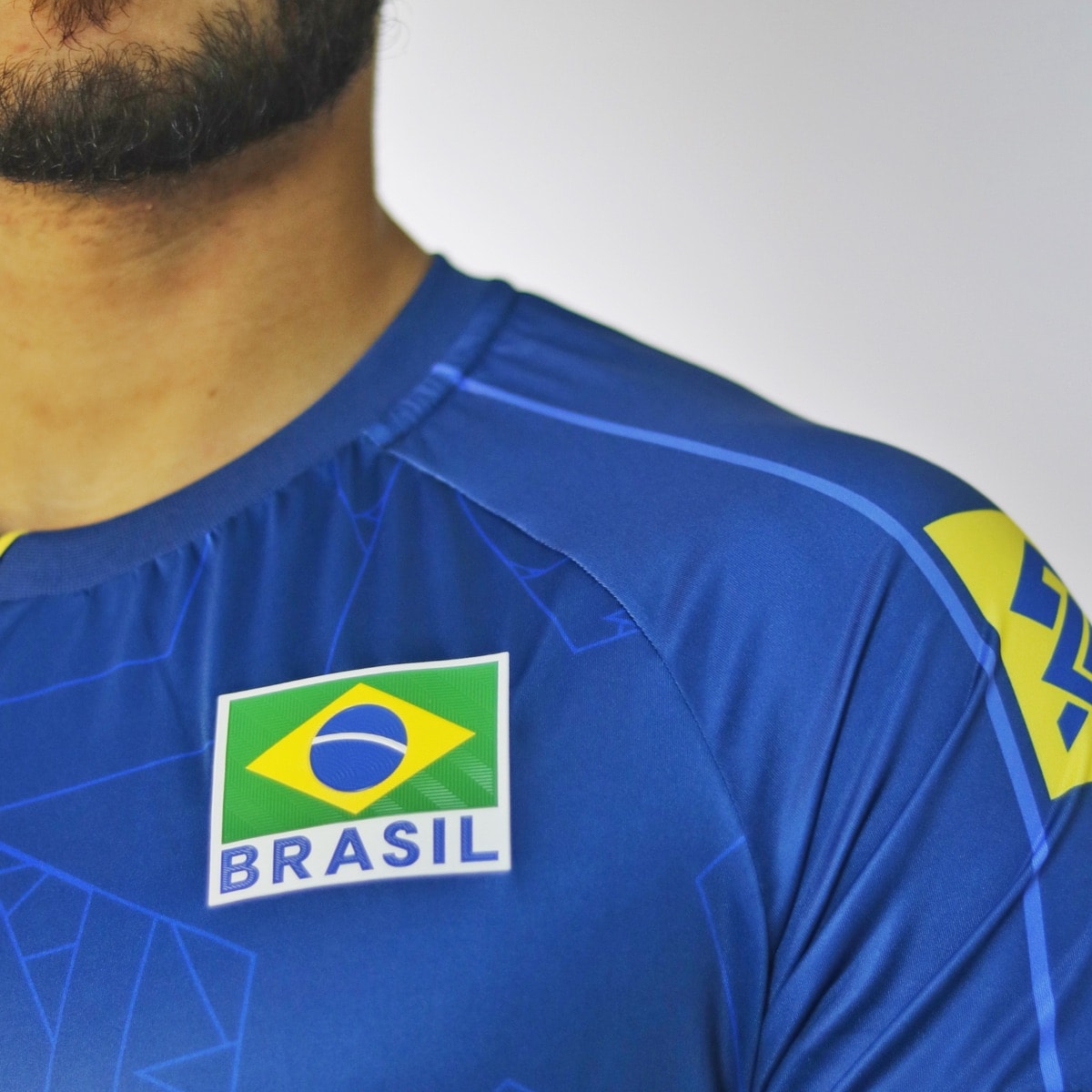 A parte frontal e as mangas são confeccionadas em uma mescla de poliéster e elastano, proporcionando elasticidade, leveza e toque suave. Já as costas combinam poliéster, entregando respirabilidade e ajuste ergonômico para a melhor performance em treinos e jogos. Os detalhes em azul e amarelo nas mangas completam o visual com elegância e identidade nacional, tornando esta peça um verdadeiro uniforme de quem joga junto com a seleção.