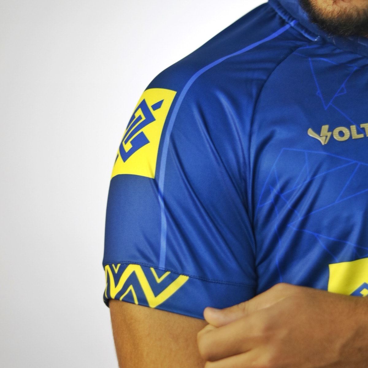 A Camisa Brasil Vôlei Masculino Jogo 2 é a expressão máxima de orgulho e performance. Em tom vibrante de azul, ela estampa com destaque os patrocínios da seleção e traz o escudo do Brasil em patch emborrachado no peito, ao lado do símbolo da Volt, reforçando sua autenticidade.