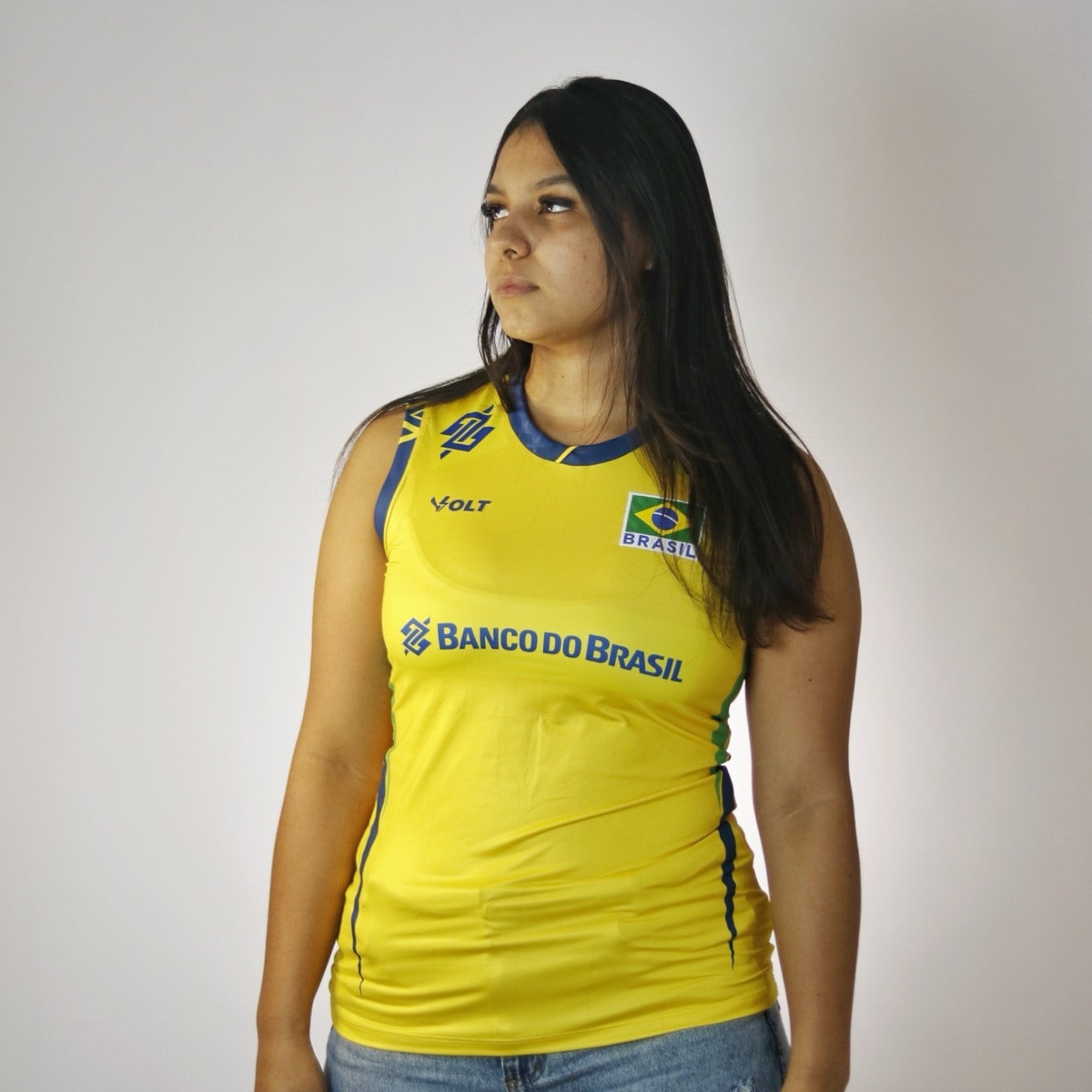 Camisa Brasil Vôlei Volt Regata 2025 Jogo 1 Amarela - Feminina