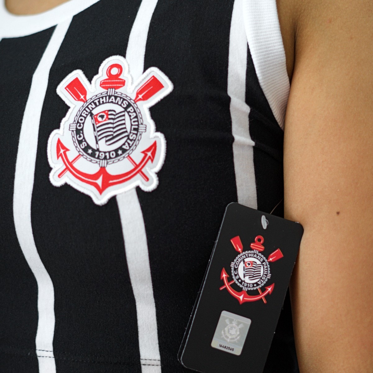 Camisa Corinthians Cropped Bordado Listrado - Feminino