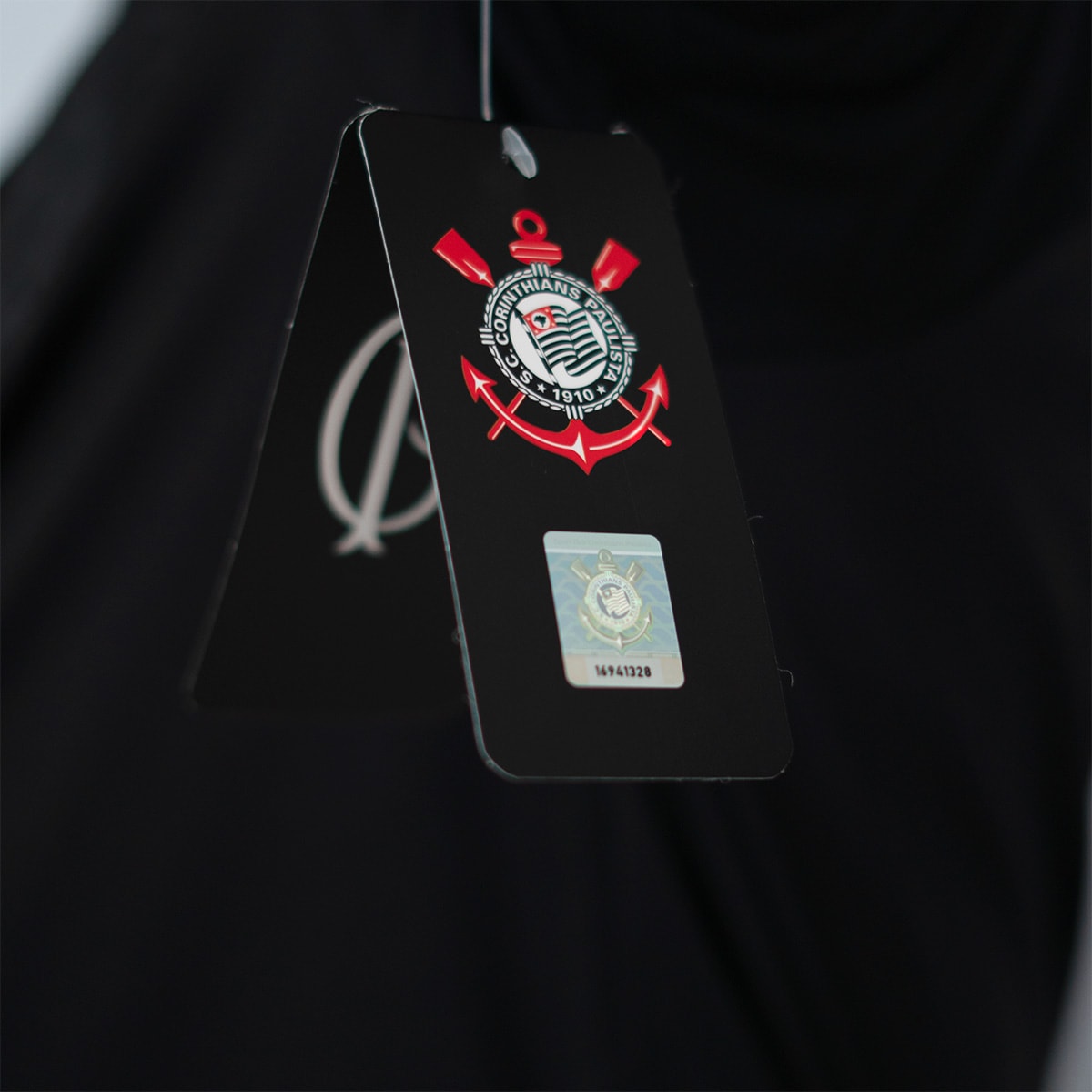 A camisa Corinthians Black é a peça ideal para quem quer vestir a paixão pelo Timão com estilo e atitude.