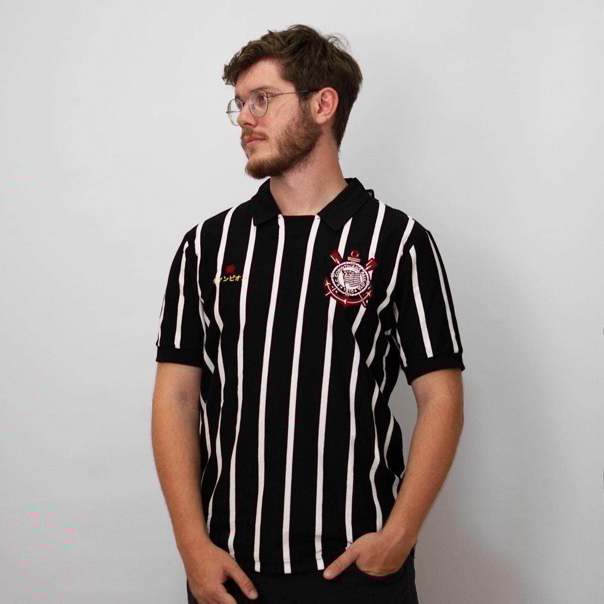 Essa peça é mais que uma camisa: é um tributo à vitória inesquecível no Japão, onde o Corinthians se consagrou campeão mundial. Ideal para vestir com orgulho ou colecionar como item histórico. Sua inscrição em japonês ("Champion"), que significa "campeão", eternizando o título conquistado em solo japonês.