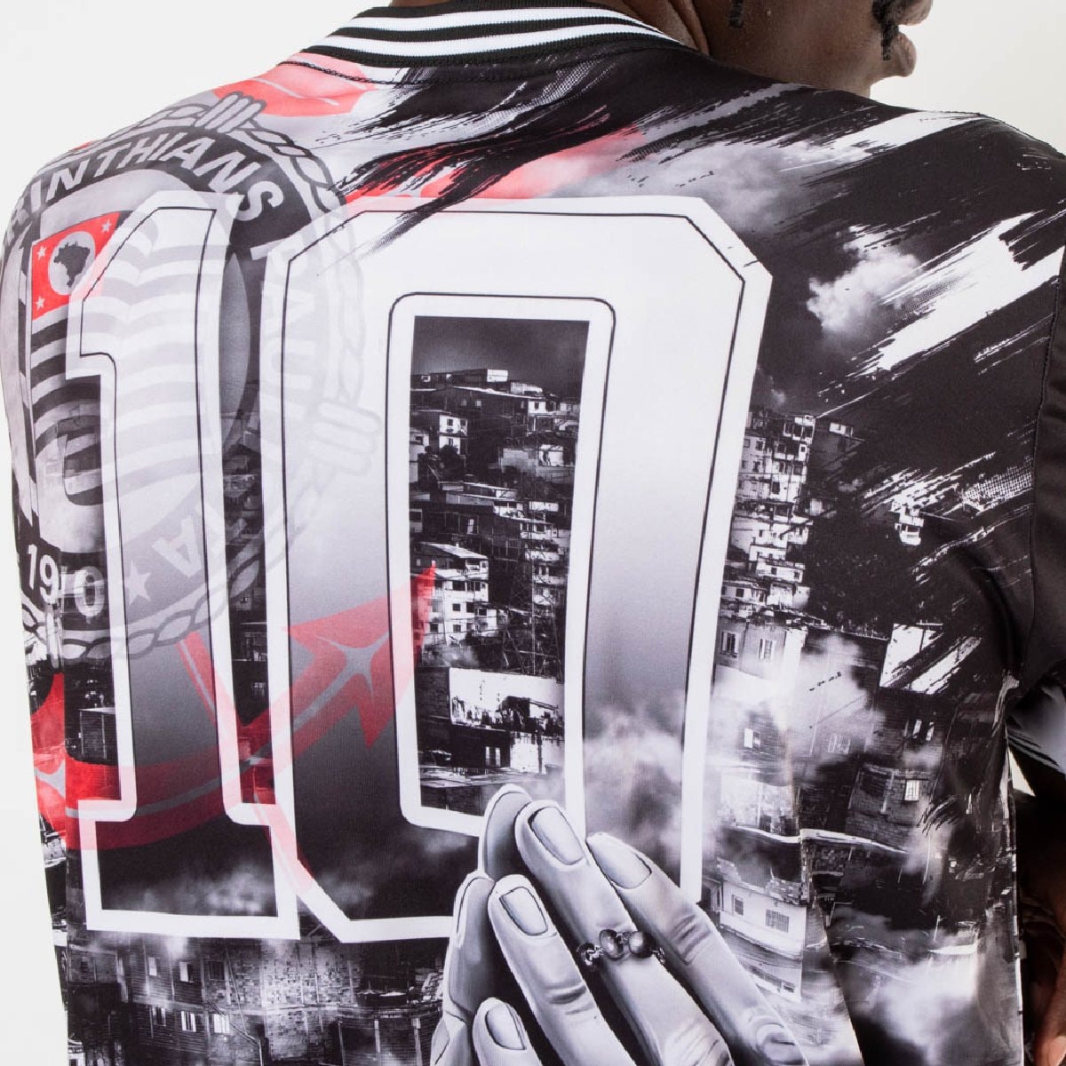 A camisa Corinthians "Quebrada" é a expressão máxima da paixão alvinegra. Com design imponente, ela traz estampada a imagem da comunidade e de São Jorge, símbolo de força e proteção. Seu escudo aparece em patch termocolante de alta qualidade, reforçando o orgulho corintiano.