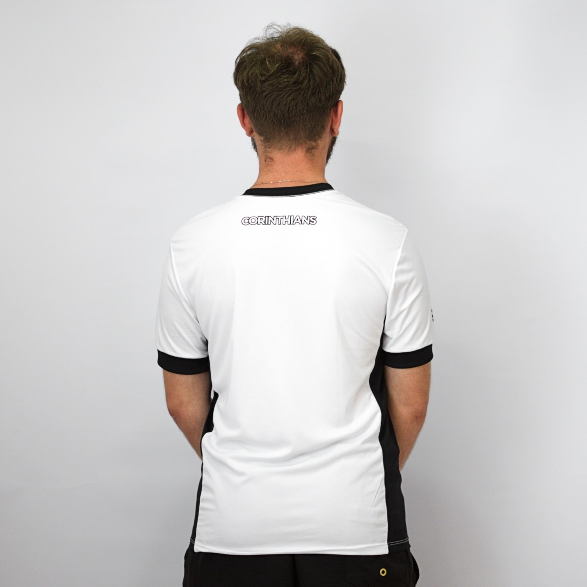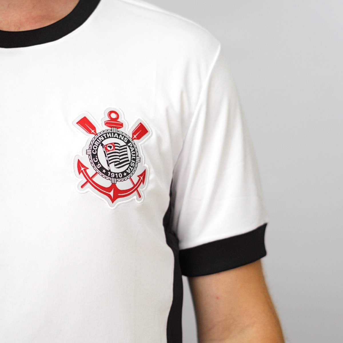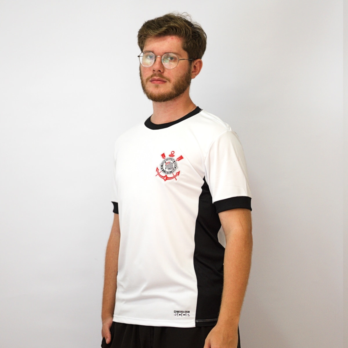 Com recortes laterais em preto que criam um contraste marcante, a peça ganha personalidade sem perder a simplicidade. O escudo bordado reforça o orgulho corinthiano com acabamento de qualidade, enquanto o tecido em poliéster garante leveza, conforto e respirabilidade.
