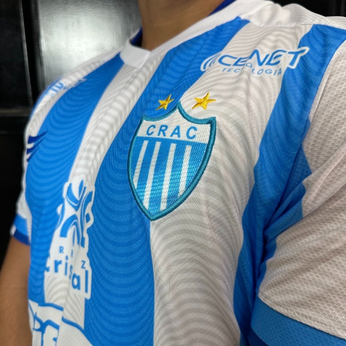 O Leão do Sul apresenta seu manto para a temporada de 2025. A camisa titular do CRAC traz o design clássico com listras verticais em azul celeste e branco com jacquard ondulado no tecido. A gola é V na cor branca com punhos que mesclam o celeste, azul marinho e o branco. Em 100% Poliéster conta com símbolo bordado no peito.