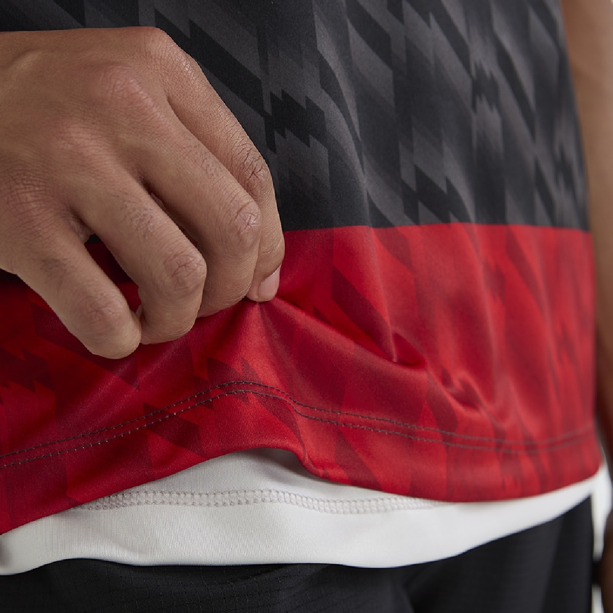 Do outro, em vibrante rubro-negro, destaca-se pelo escudo no peito e pela estampa inspirada no movimento das bandeiras da torcida, transmitindo toda a energia e intensidade do clube. Uma peça versátil que celebra estilo, tradição e emoção dentro e fora das quadras.