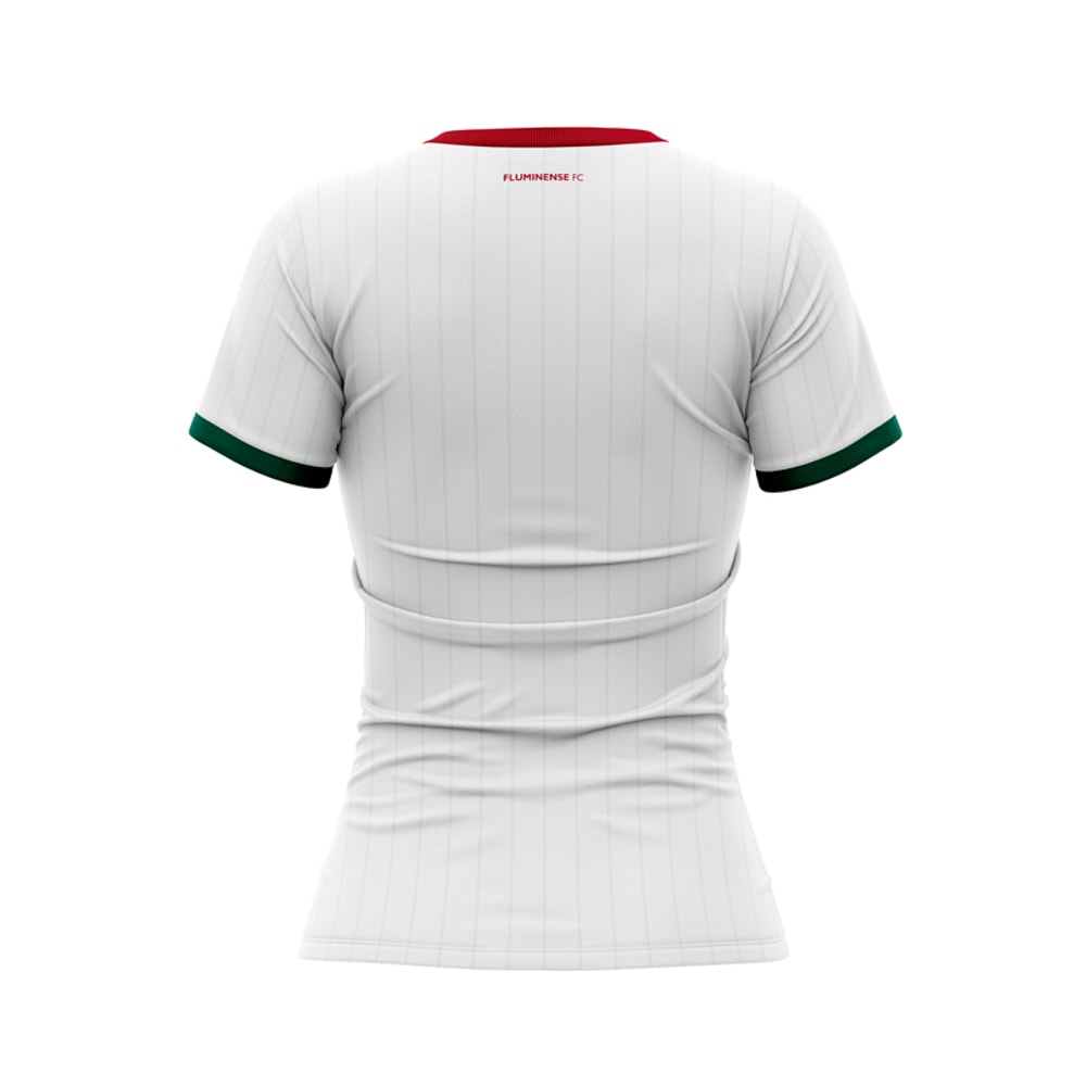 Produzida em 100% poliéster leve e respirável, a peça conta tem um design ousado e moderno, predominante branca, conta com faixas nas cores do tricolor na altura do tórax, além do escudo do clube estampado no meio.