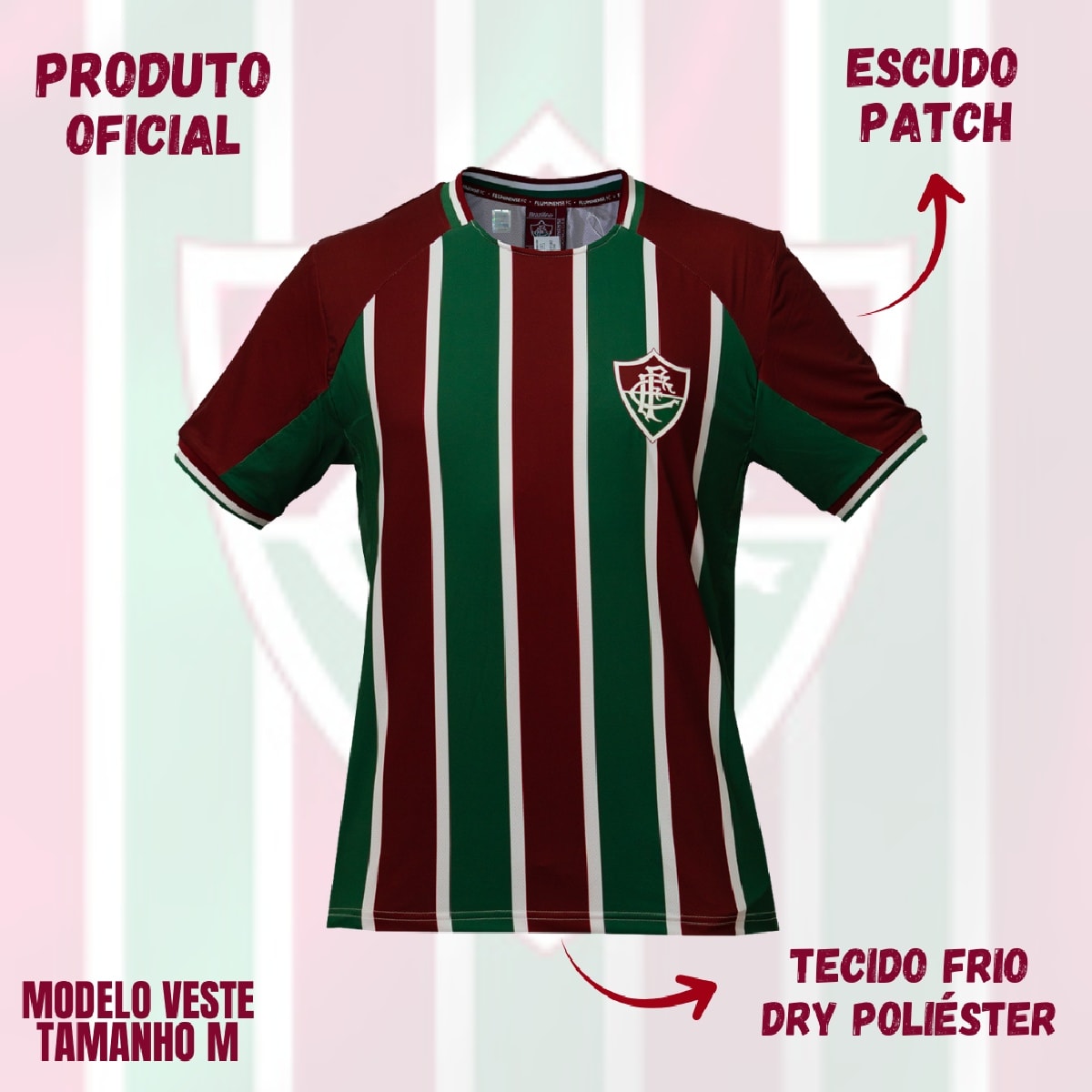 Confeccionada em poliéster e elastano, apresenta um tecido super leve e macio, garantindo conforto tanto nos dias de jogo quanto nos treinos do dia a dia. É uma peça versátil e resistente. Por sua vez, seu tecido frio, perfeita para todos os torcedores que desejam vestir o Fluzão com orgulho e estilo.