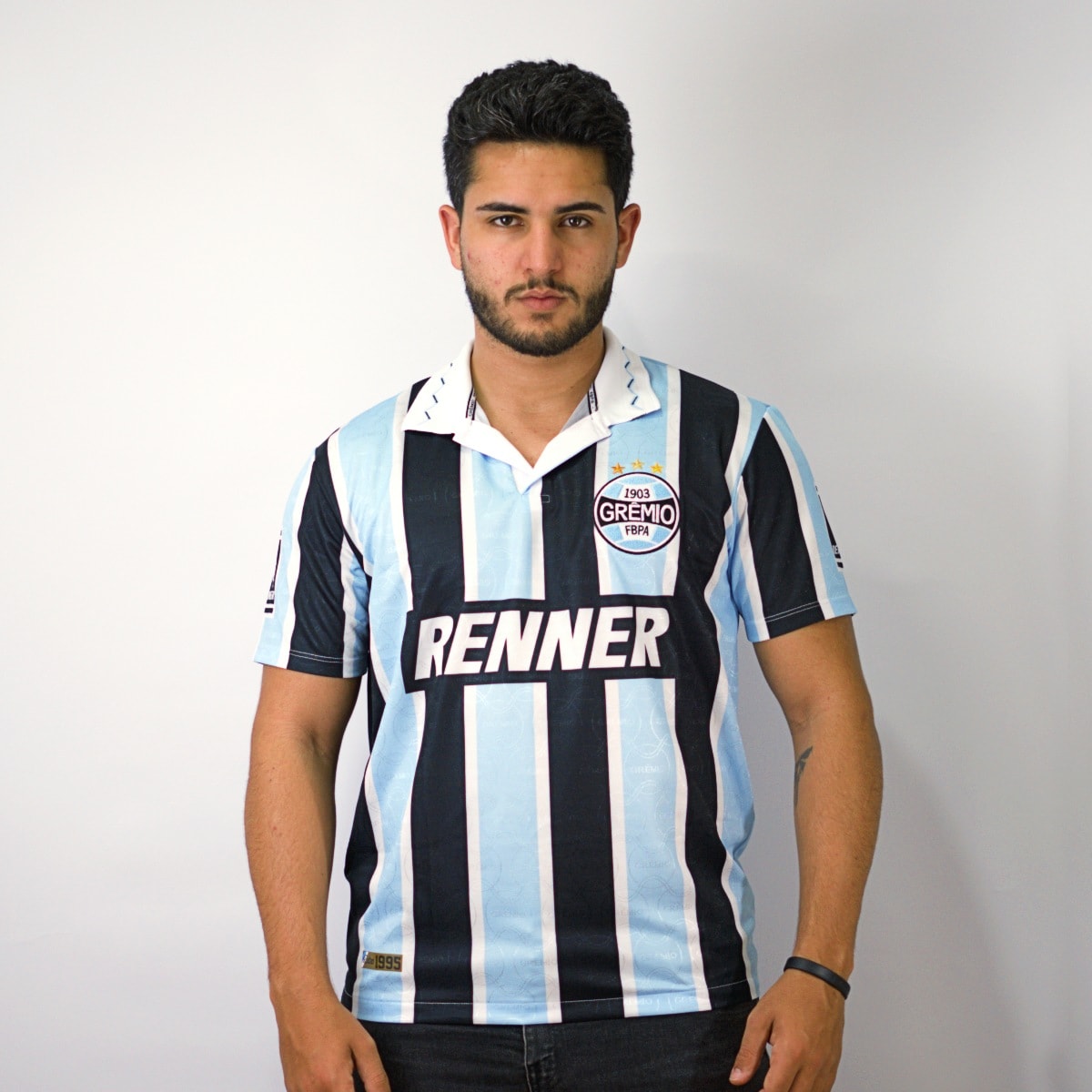 A camisa Retrô 1995 do Grêmio é uma verdadeira relíquia para os amantes do Tricolor Gaúcho. Inspirada no uniforme histórico da conquista da Libertadores, apresenta as tradicionais listras azul, preta e branca, que simbolizam a identidade do clube. O icônico patrocínio Renner reforça o charme nostálgico, transportando os torcedores para uma era de glórias.