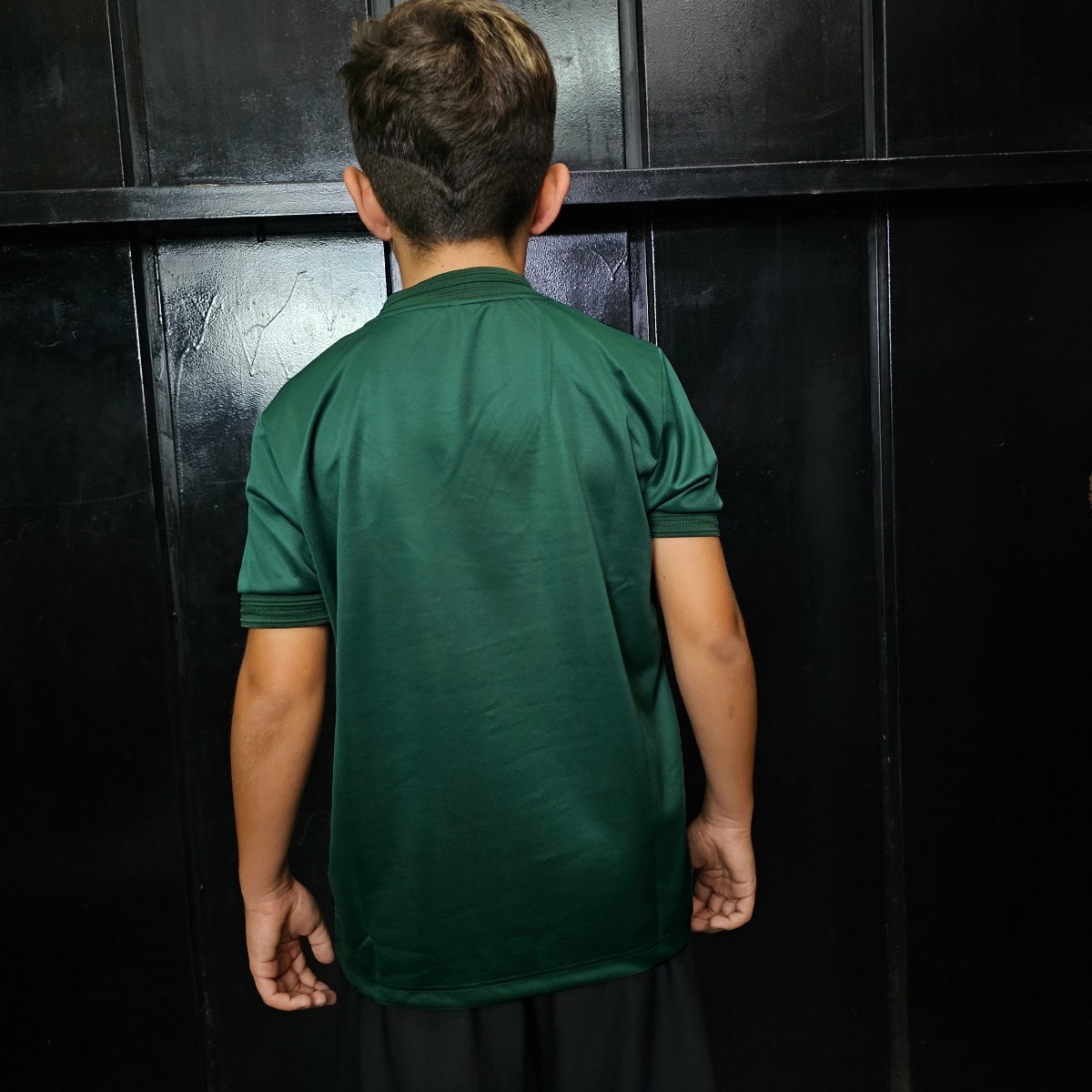 A camisa Palmeiras Home II Infantil é composta em poliéster, é predominantemente verde, com detalhes na gola, proporcionando um visual distintivo e elegante. Apresenta gola em V canelada e mangas curtas para maior conforto e estilo. O escudo do clube é bordado com precisão ao lado esquerdo do peito, exibindo seu apoio ao Verdão com orgulho e autenticidade. Esta camisa é perfeita para quem deseja expressar seu amor pelo Palmeiras não apenas nos momentos de partida, mas também em atividades casuais do dia a dia.