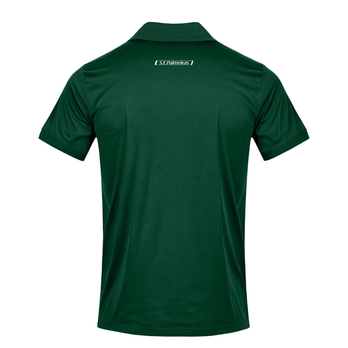 Produzida em 100% poliéster, com gola polo, na cor verde e o símbolo da Sociedade Esportiva Palmeiras estampado na altura do peito.