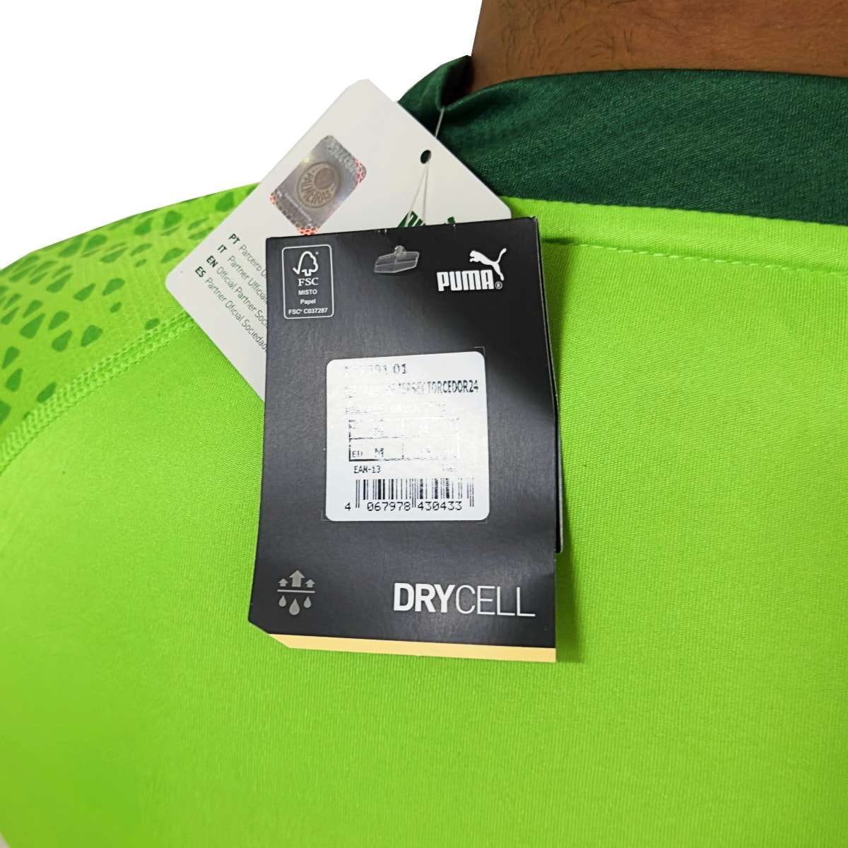 A Puma apresenta a camisa de treino para o ano de 2024. O mesmo modelo utilizado pelos jogadores nos treinos do Verdão, na versão torcedor. Na cor verde, feita com tecido tecnológico de alta absorção conhecido com dryCELL. Produzida em 100% Poliéster, a peça conta com o escudo estampado do lado esquerdo do peito.