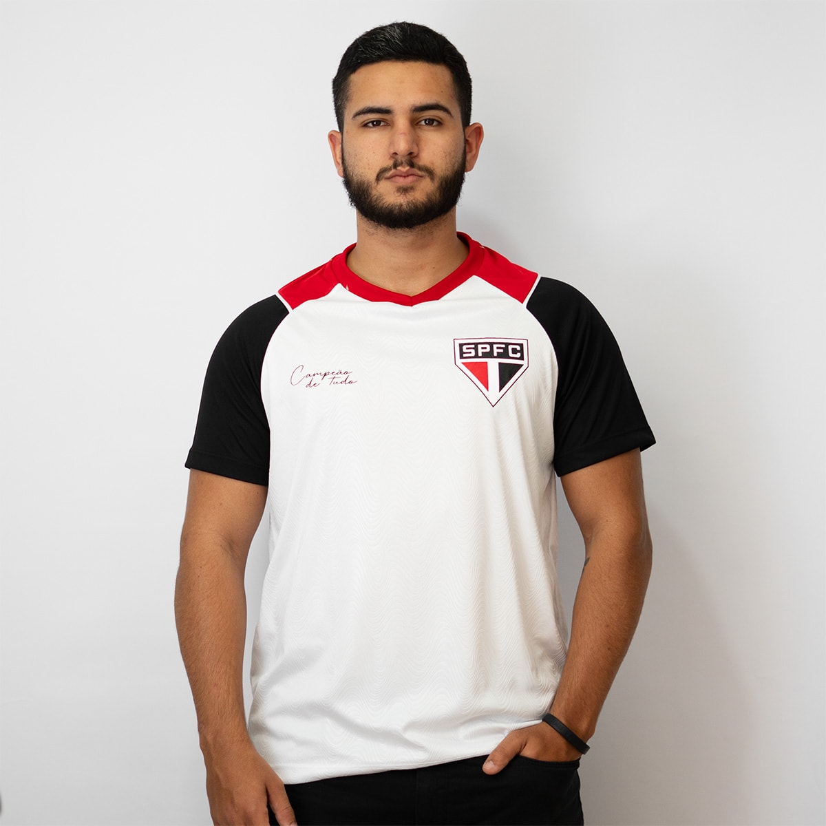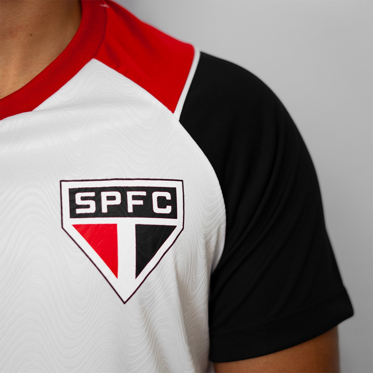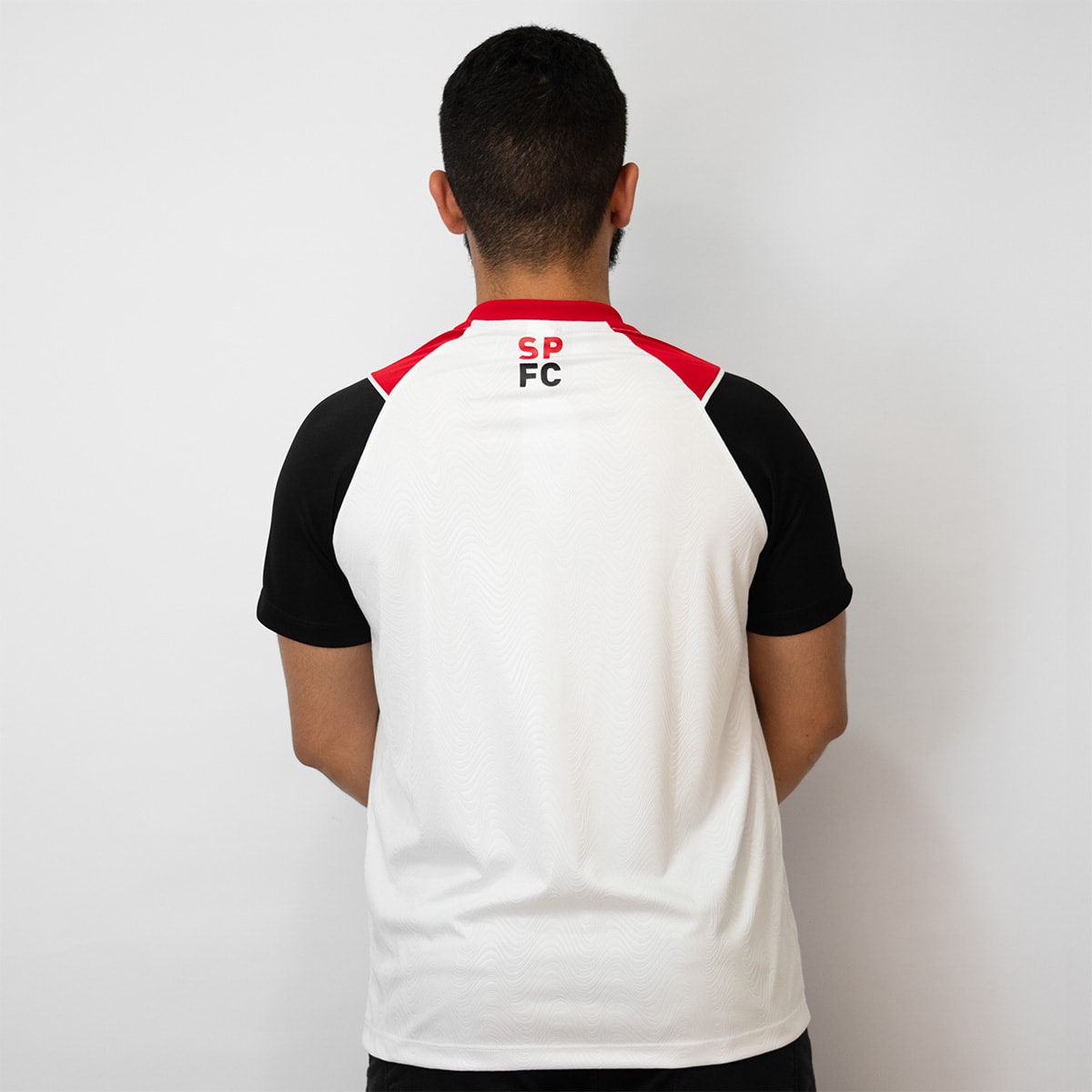 Produzida em poliéster leve e respirável, oferece conforto e liberdade nos movimentos, mantendo o frescor durante o uso. O design clássico na cor branca traz o escudo do São Paulo estampado em destaque no peito, reforçando a identidade do clube.