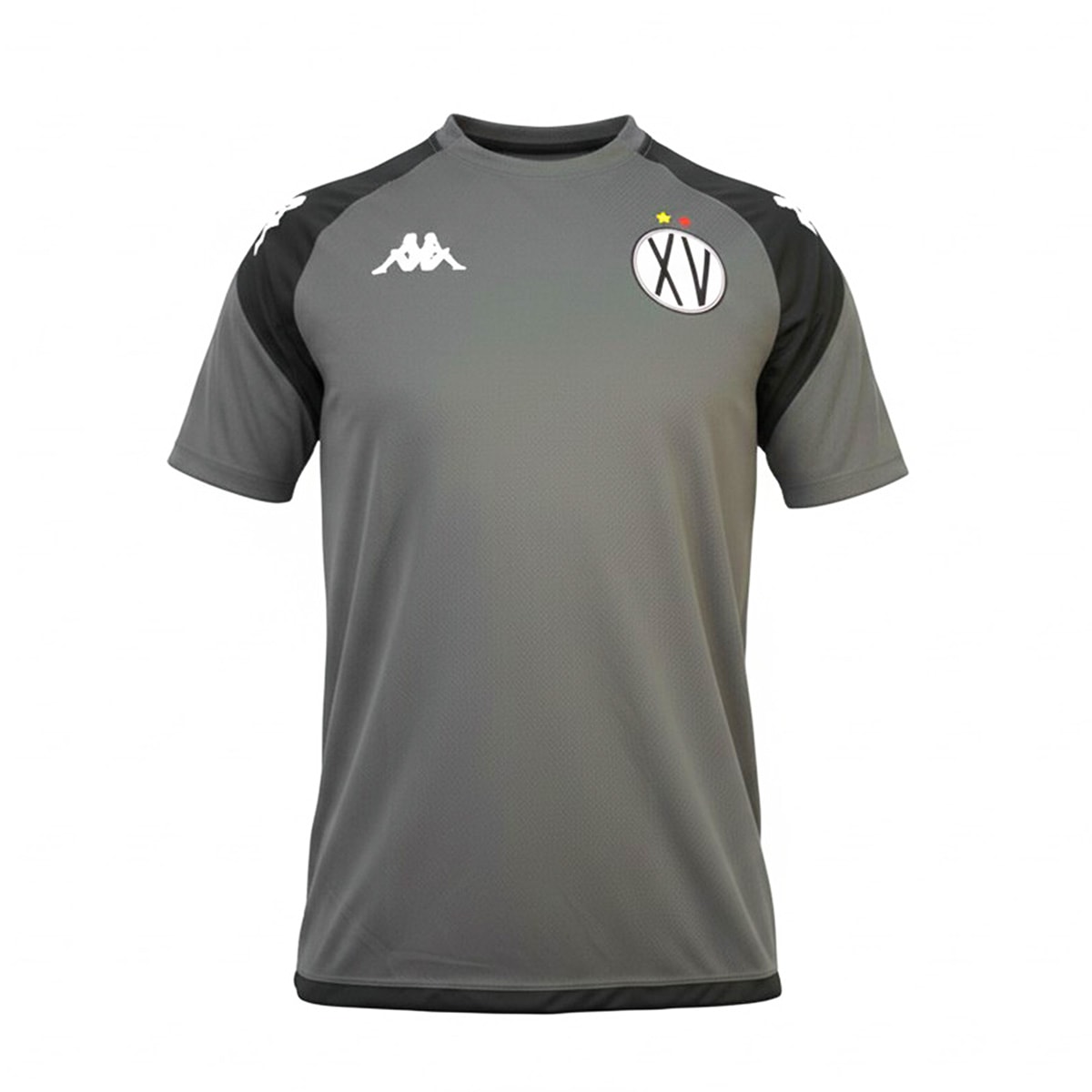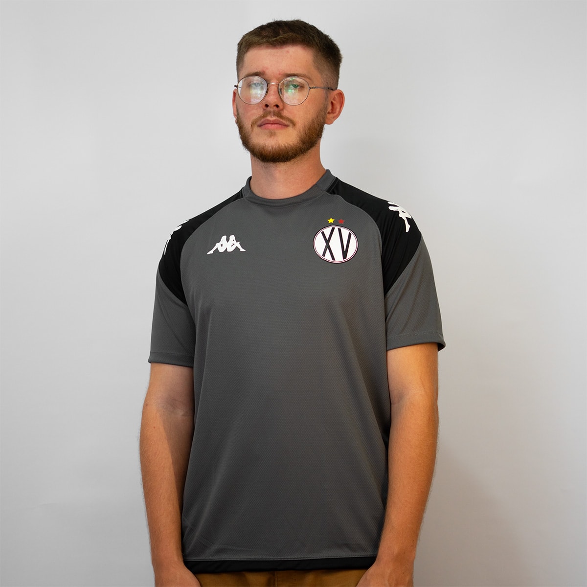 Com cor predominante em cinza, transmite elegância e versatilidade, tornando-se uma peça ideal para diferentes ocasiões. O escudo do XV e a marca da Kappa são aplicados em silk, reforçando a identidade do clube e celebrando a nova parceria com a patrocinadora.