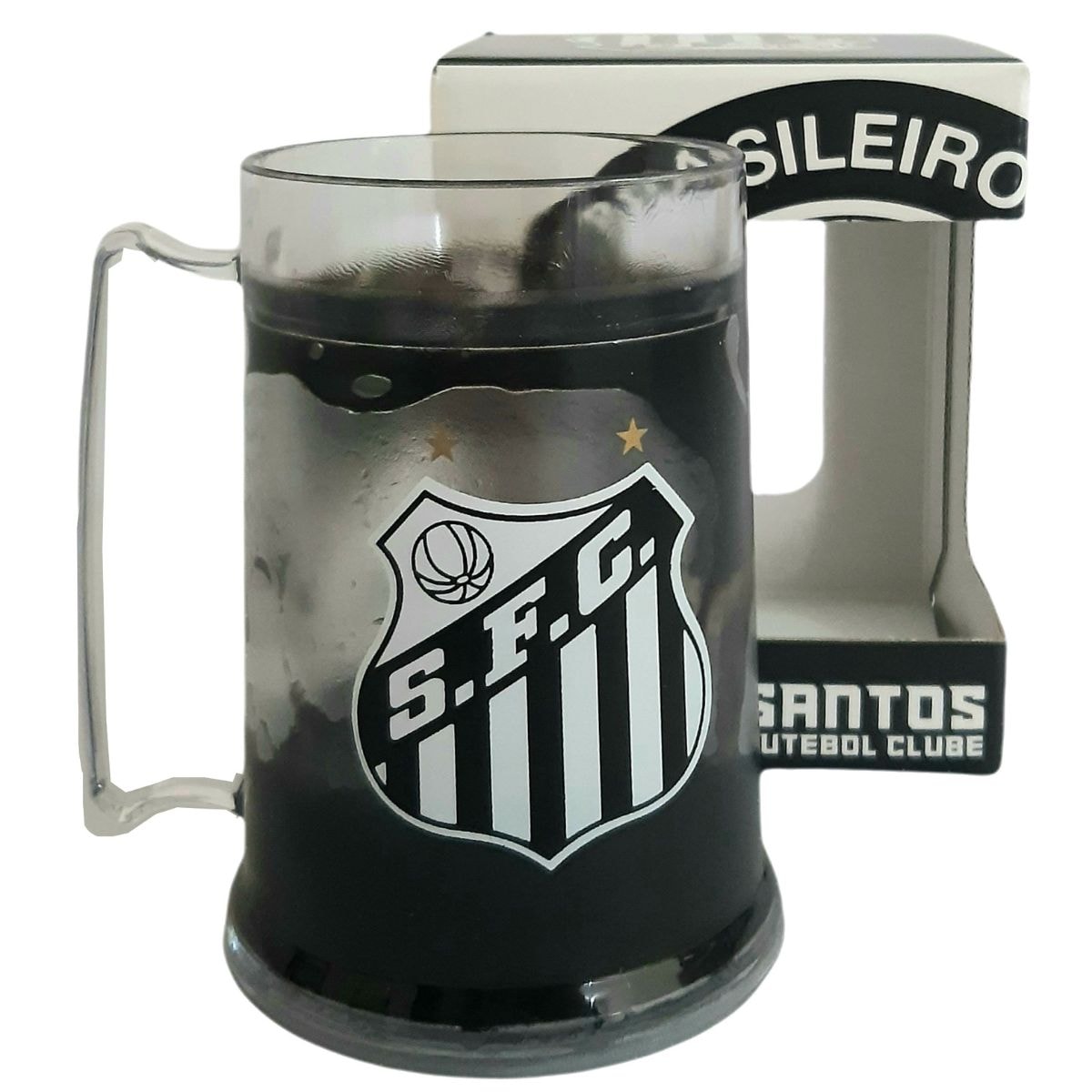 A Caneca Gel Congelante Santos Oficial é ideal para tomar sua bebida bem gelada.