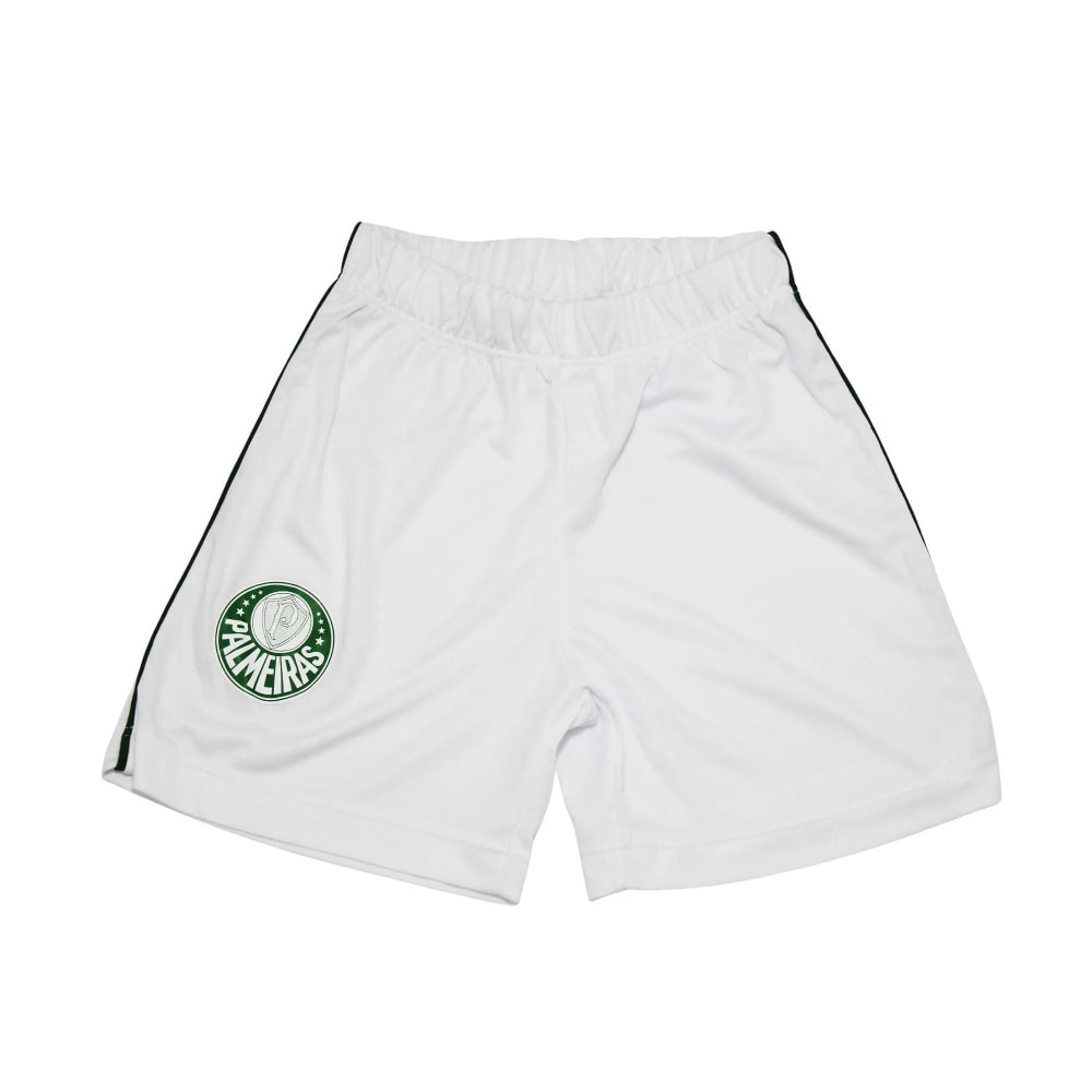 O shorts branco, também em poliéster, complementa o visual com o emblema do clube, garantindo estilo e liberdade nos movimentos. Para finalizar, o meião branco com listras verdes e o nome “Palmeiras” escrito em destaque traz aquele toque especial que faz toda a diferença. Ideal para brincar, torcer ou acompanhar os jogos com o coração alviverde batendo forte!