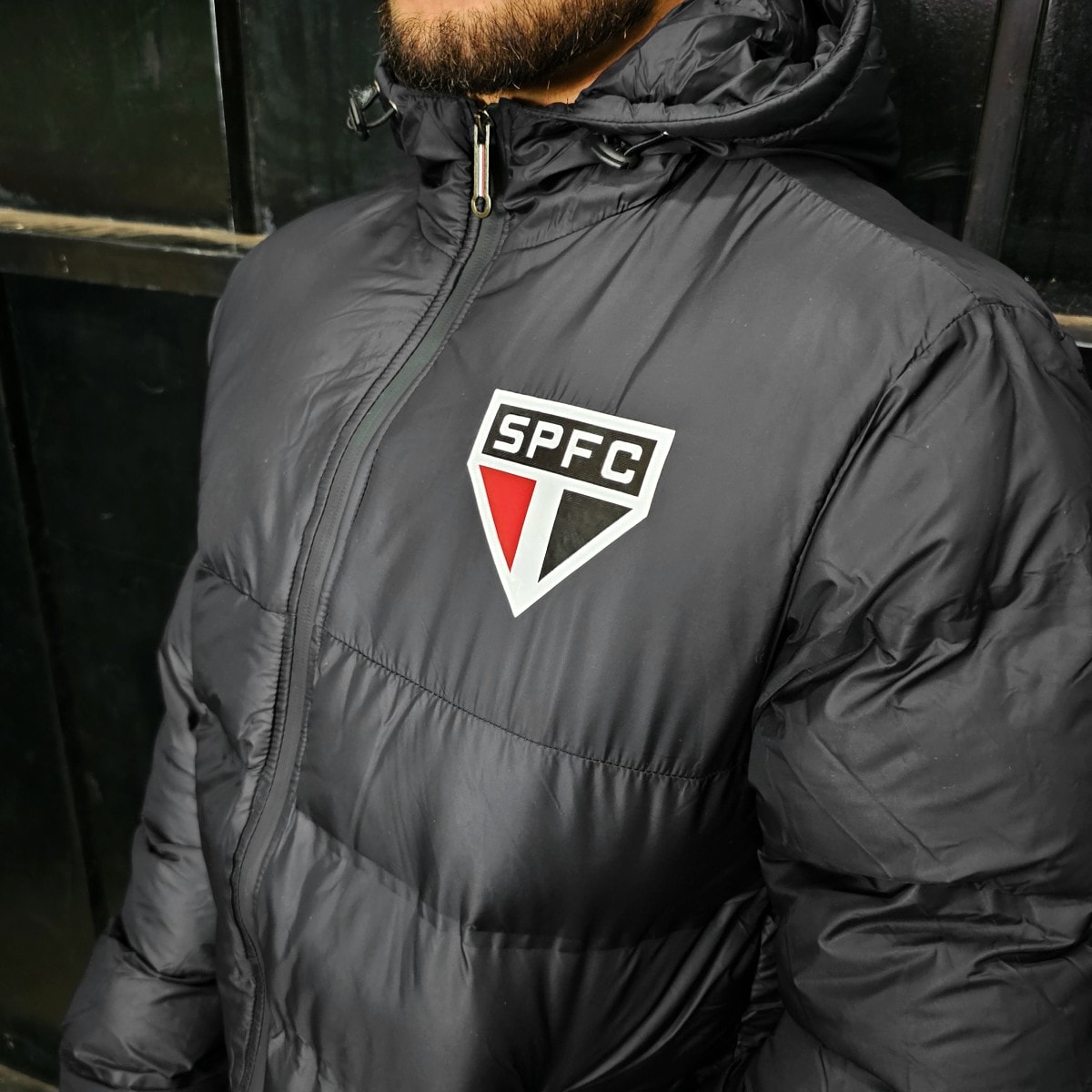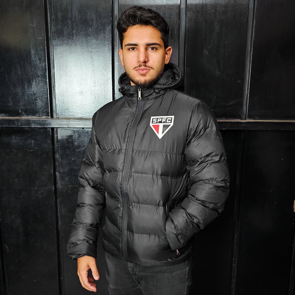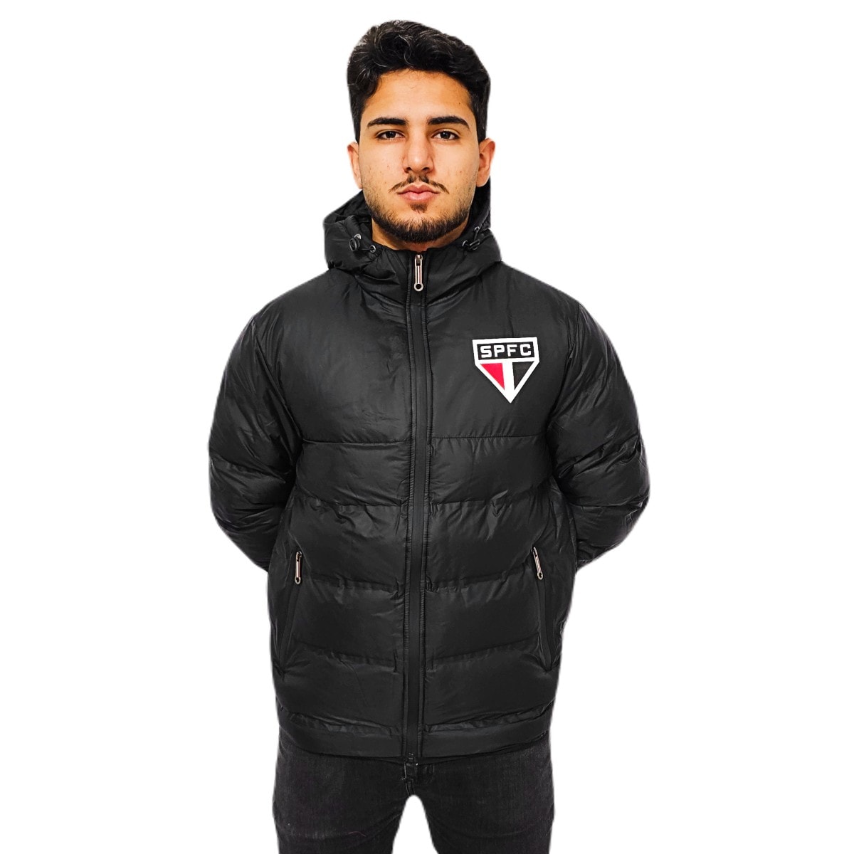 A Jaqueta São Paulo Puffer Masculina combina estilo e funcionalidade com sua construção em nylon preto resistente, manta acrílica matelassê para aquecimento e bolsos práticos com zíper selado. Com gorro ajustável e logo Patch TPU, é perfeita para uso casual ou nos dias de jogo no estádio. Uma peça versátil para quem valoriza conforto e apoio ao time!