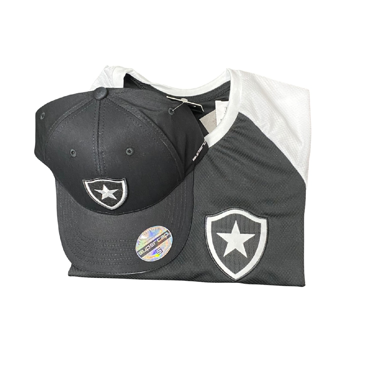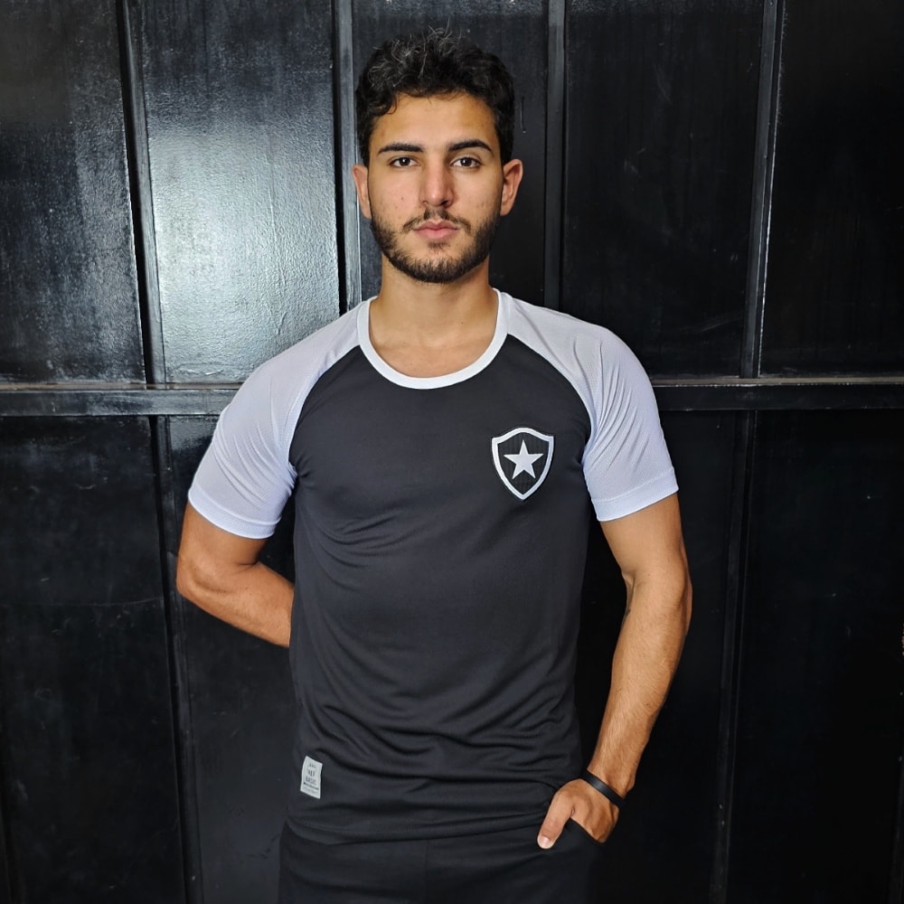 Produzida em 100% poliéster leve e respirável, a peça em preto, com detalhes no branco, conta com o símbolo do Botafogo bordado em patch do lado esquerdo.