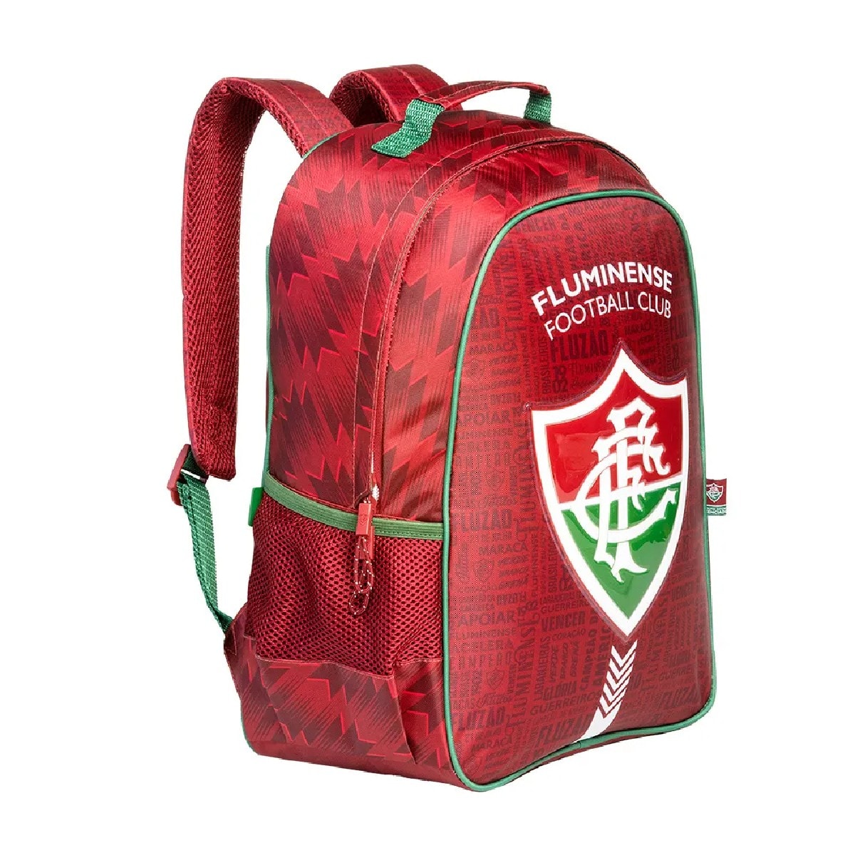 - Forro interno personalizado com a marca e o escudo do Fluminense, completando o visual com exclusividade e orgulho.