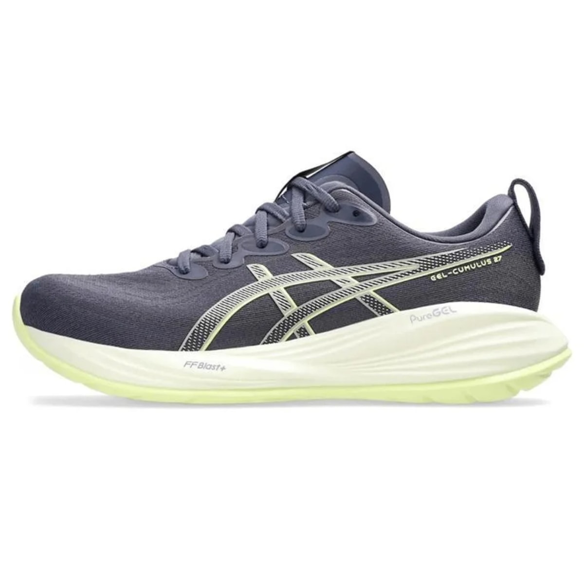 Comprometido com a sustentabilidade, o GEL-CUMULUS™ 27 apresenta pelo menos 75% do material principal do cabedal confeccionado com materiais reciclados, minimizando o impacto ambiental. O puxador traseiro em knit facilita o calce, proporcionando ainda mais praticidade no dia a dia.
